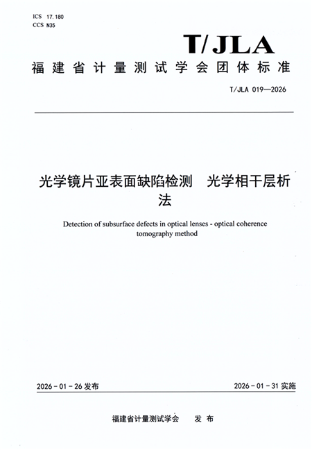 近日,福建省计量测试学会团体标准《光学镜片亚表面缺陷检测 光学相干法》完成团体标准制定流程,顺利通过专家审定,于1月26日正式发布。